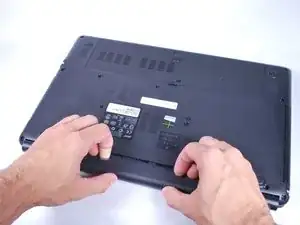 Крепко удерживая батарею, вытащите её из ноутбука, сдвинув наружу.