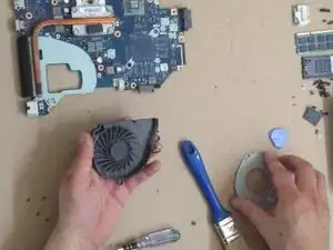Соберите ноутбук и после включения проверьте, работает ли вентилятор.