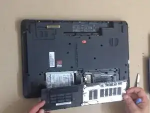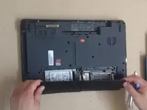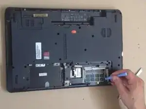 С помощью пластикового инструмента снимите крышку памяти RAM / жесткого диска / Wi-Fi.