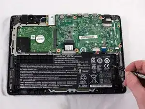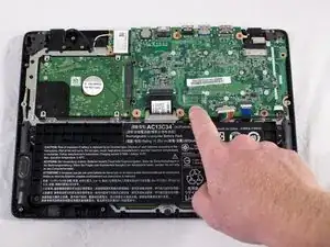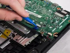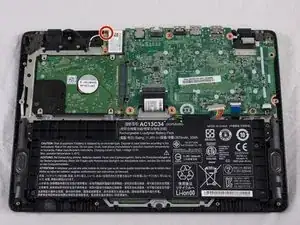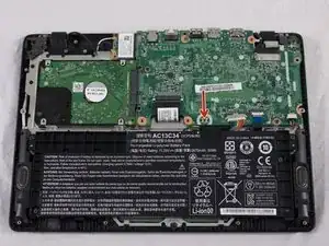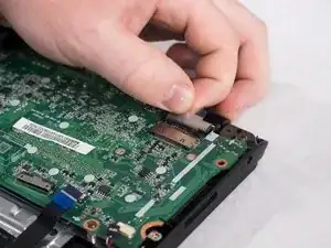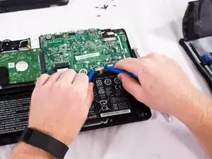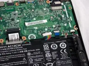 Пальцами или небольшим пластиковым инструментом отсоедините разъем аккумулятора от материнской платы, сжав и оттянув обе стороны разъёма назад.