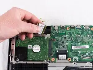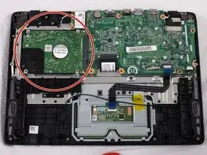 Найдите жесткий диск и сдвиньте его влево, пока он не отсоединится от материнской платы.