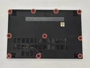 Переверните ноутбук так, чтобы его нижняя часть была сверху.