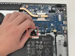 Используйте наконечник лопатки, чтобы нажимать поочерёдно с одной и с другой стороны разъёма аккумулятора, «вытаптывая» его из гнезда на материнской плате.