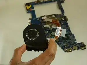 Осторожно снимите вентилятор с материнской платы, отсоединив пластиковую защёлку, как показано на фотографиях.
