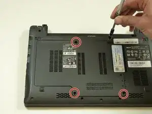 Используйте крестовую отвертку #0, чтобы выкрутить 5 винтов с нижней крышки.
