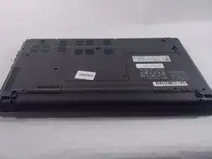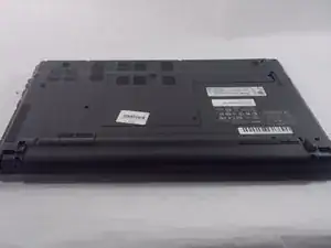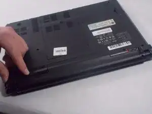 Переверните ноутбук так, чтобы нижняя часть была направлена вверх, а батарея — к вам.