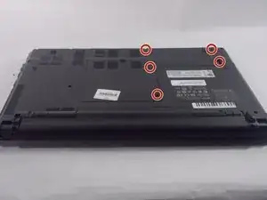 Переверните ноутбук и снимите винты (PH#1, длина 8 мм), фиксирующие заднюю крышку.