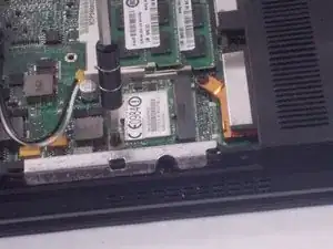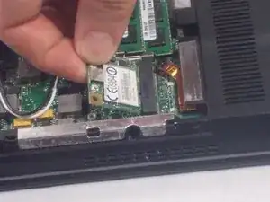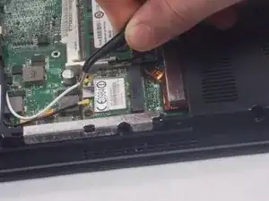 Снимите винт (PH#1, длина 3 мм), фиксирующий плату WLAN к корпусу ноутбука.