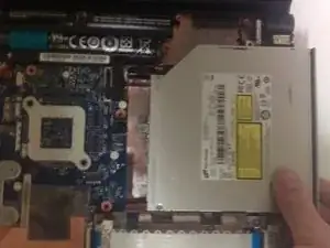 Выдвиньте привод DVD из корпуса компьютера, чтобы получить доступ к кабелям.