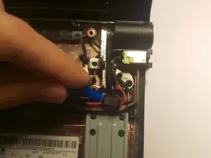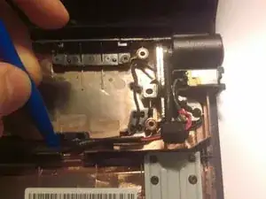 Разъём питания легко обнаружить после снятия клавиатуры.