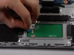 Начните с аккуратного извлечения ленточного кабеля, подключённого к тачпаду.