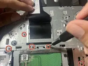 Если вы хотите заменить тачпад потому, что он повреждён, продолжайте с этим руководством по замене! Вам потребуются монтажная лопатка, отвертка с битой для прецизионных винтов и магнитная насадка для подъёма винтов.