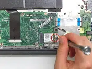 Выверните винт Phillips #0 длиной 4 мм, который крепит беспроводной адаптер к основной плате.