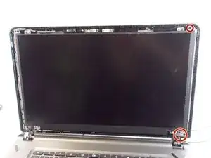 Поверните дисплей так, чтобы шарниры были обращены к вам, затем с помощью медиатора для открытия или пластикового инструмента подденьте рамку передней панели экрана и снимите её.