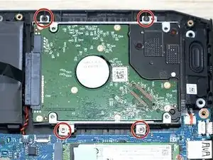 Используйте отвёртку Phillips #0, чтобы выкрутить четыре винта длиной 3 мм с крепления жёсткого диска.
