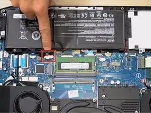 Отсоедините кабель батареи от разъёма, соединяющего батарею с материнской платой.