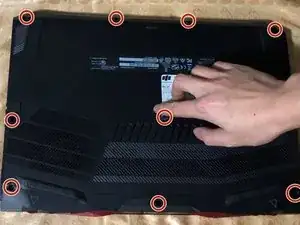 Используйте отвёртку Phillips #0, чтобы выкрутить десять винтов длиной 9 мм.
