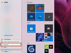 Во время подготовки и установки обращайтесь с SSD очень осторожно, так как устройство, особенно контакты разъёма, чрезвычайно хрупкое. Убедитесь, что текущий SSD скопирован перед началом замены. Как только будете готовы, выключите ноутбук и отключите его от всех источников питания.