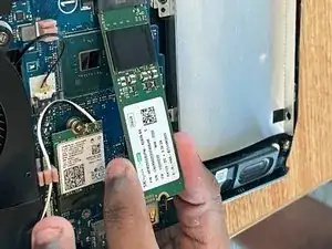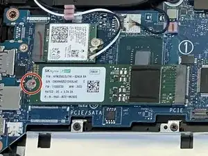 Удалите винт 2,6 мм, который удерживает SSD, с помощью крестовой отвертки Phillips #0.