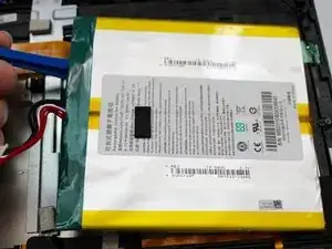 Используйте пластиковый инструмент для вскрытия, чтобы отделить клей, удерживающий аккумулятор на экране.