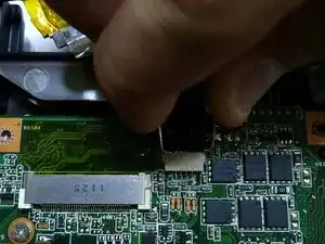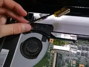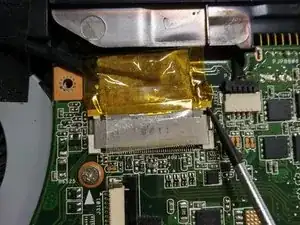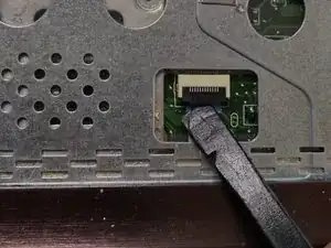 используйте наконечник лопаточки или маленькую плоскую отвертку, чтобы выдавить кабель дисплея из разъёма.