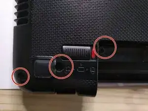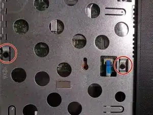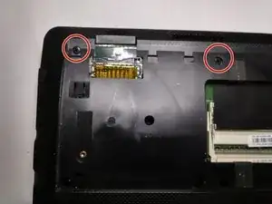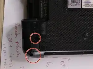 2 винта отмечены красным. затем сдвиньте крышку в сторону от ноутбука