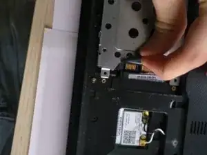 сдвиньте рамку и жёсткий диск в сторону от корпуса.
