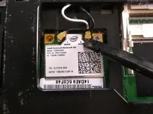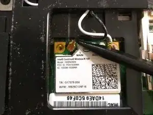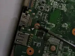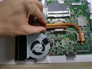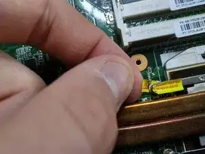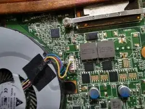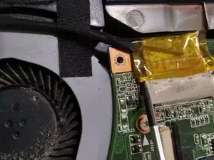 удалите винт, удерживающий вентилятор в ноутбуке.