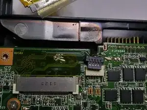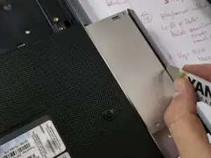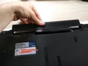 сдвиньте аккумулятор в сторону от ноутбука