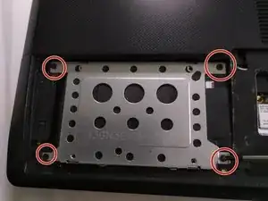 удалите 4 винта, крепящие металлическую рамку, удерживающую жёсткий диск на месте.