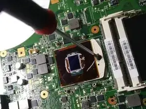 ослабьте винты крепления термопрокладок на процессоре и графическом процессоре.
