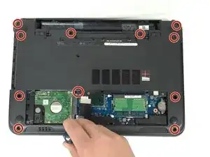 Выверните 12 винтов M2.5 x 5 мм с крестообразной головкой, удерживающих нижнюю панель под ладонями.