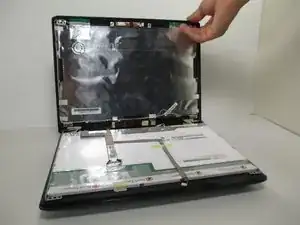 Откройте ноутбук снова. После снятия винтов экран должен оставаться плоско прижатым к клавиатуре.