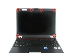 Снимите четыре винта Phillips #1 длиной 2,0 мм в каждом углу экрана ноутбука.