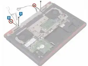 Установите два винта (M2x3), которые крепят узел дисплея к основанию корпуса компьютера.