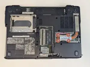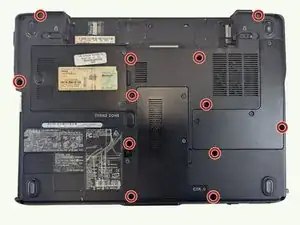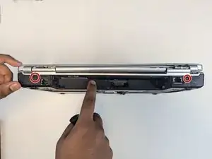 Переверните ноутбук, чтобы показать заднюю панель.