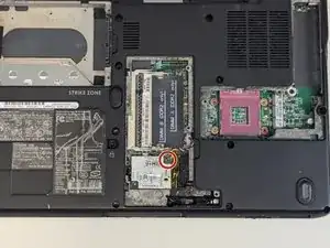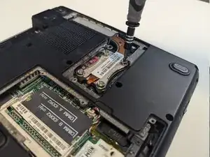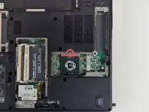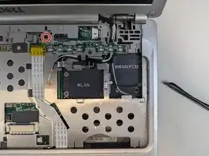 Ослабьте и удалите винт модемной карты с помощью отвертки Phillips #1.