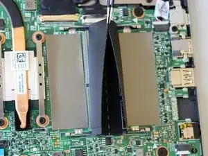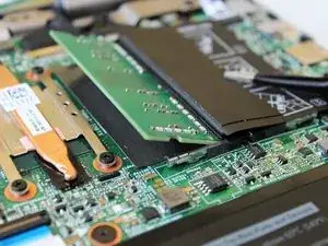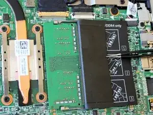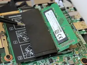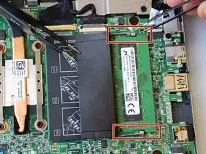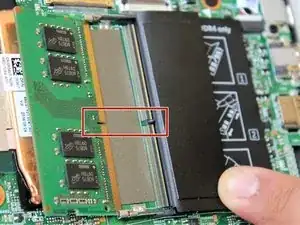 Отогните защитные язычки в сторону у модуля памяти, расположенного в верхнем правом углу ноутбука.