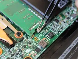 Как и ранее, оттяните крепления от модуля с помощью пинцета.