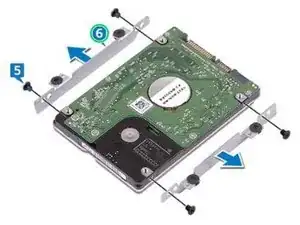 Удалите четыре винта (M3x3), которые закрепляют кронштейн жёсткого диска на самом диске.