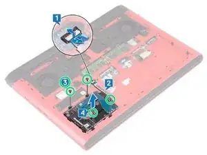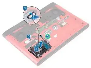 Удалите четыре винта (M2.5x3), которыми узел жесткого диска крепится к основанию компьютера.