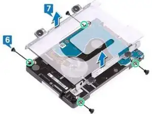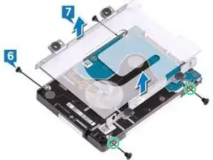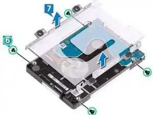 Удалите четыре винта (M3x3), которыми крепится кронштейн жесткого диска к самому диску.