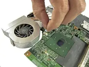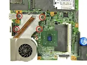 Удалите четыре винта с крестообразным шлицем, закрепляющие радиатор на материнской плате.