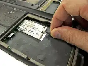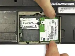 Плата Wi‑Fi зажата двумя защёлками, по одной с каждой стороны. Сдвиньте защёлки в стороны пальцами.