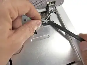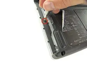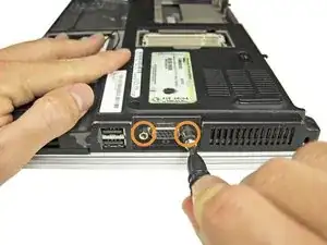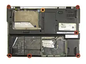 Переверните 700m и удалите два винта с крестообразной головкой, расположенные сзади рядом с петлями дисплея.
