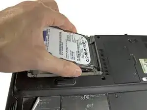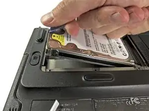Потяните за синюю вкладку, чтобы поднять жёсткий диск под углом.