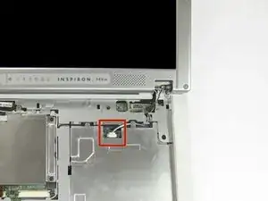 Определите кабель инвертора дисплея, который подключается к материнской плате сразу выше и справа от разъёма кабеля динамика.