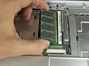 Наклоните правую сторону крышки оперативной памяти под углом и снимите её.