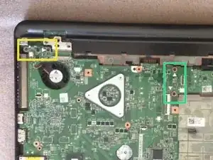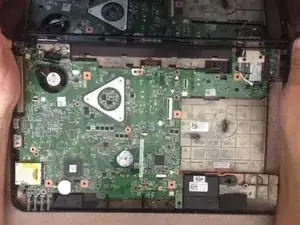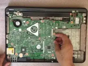 Начните извлекать материнскую плату с правой стороны, рядом с разъёмом DVD-привода.