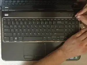 С помощью лезвия аккуратно поднимите одну сторону клавиатуры и начните открывать защёлки.